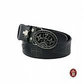 Monk leather belt with metal buckle, in bronze - black color, bearing the Cross of Calvary flanked by two Cherubs.